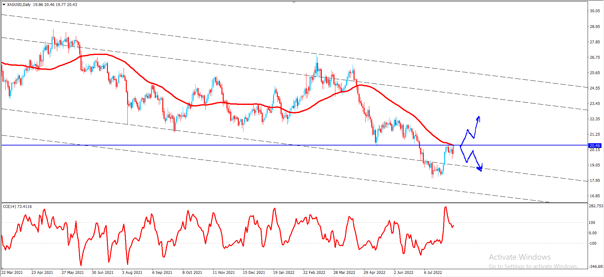 ولذالك فنحن الان بانتظار مزيد من الارتفاع لاختراق مستوى 20.50  والاندفاع نحو هدفنا التالي عند 21.00 ليبقى سيناريو الاتجاه الصاعد فعالا لهذا اليوم