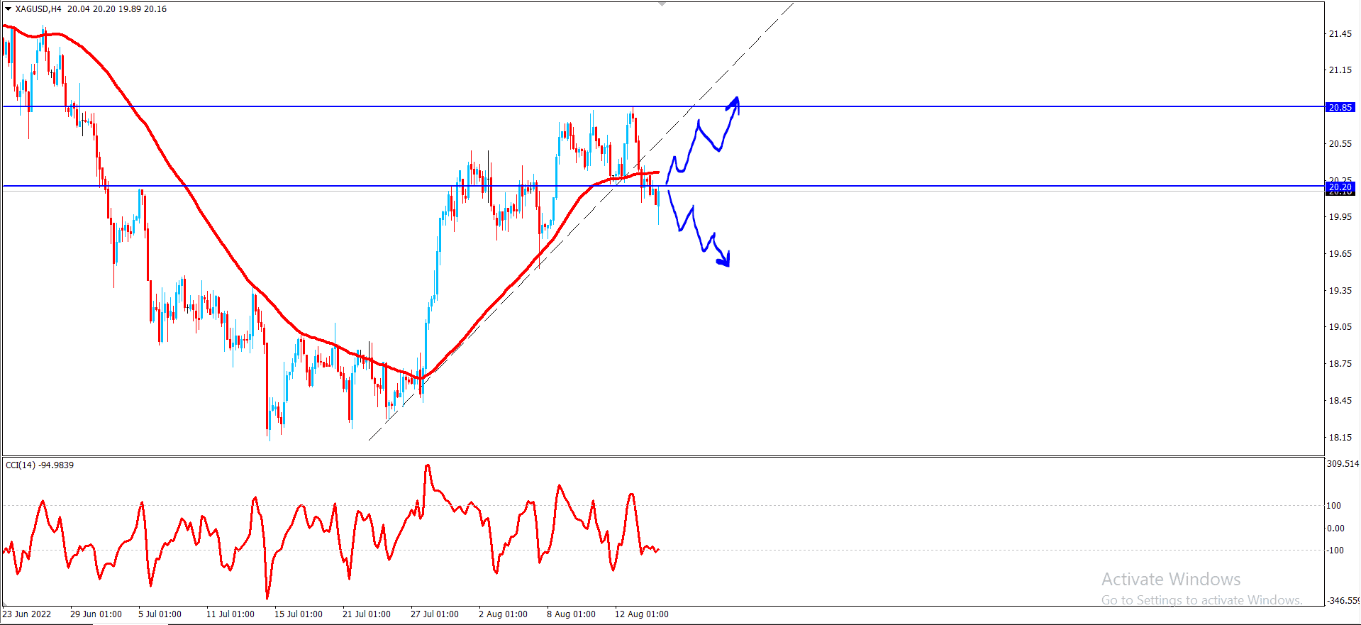 موجه هابطه تكونت معنا على شارت الفضه كما نلاحظ الان ومنها يستمر سعر الفضة بالتذبذب عند الدعم المحوري 20.00 وطالما أن السعر فوق هذا المستوى،