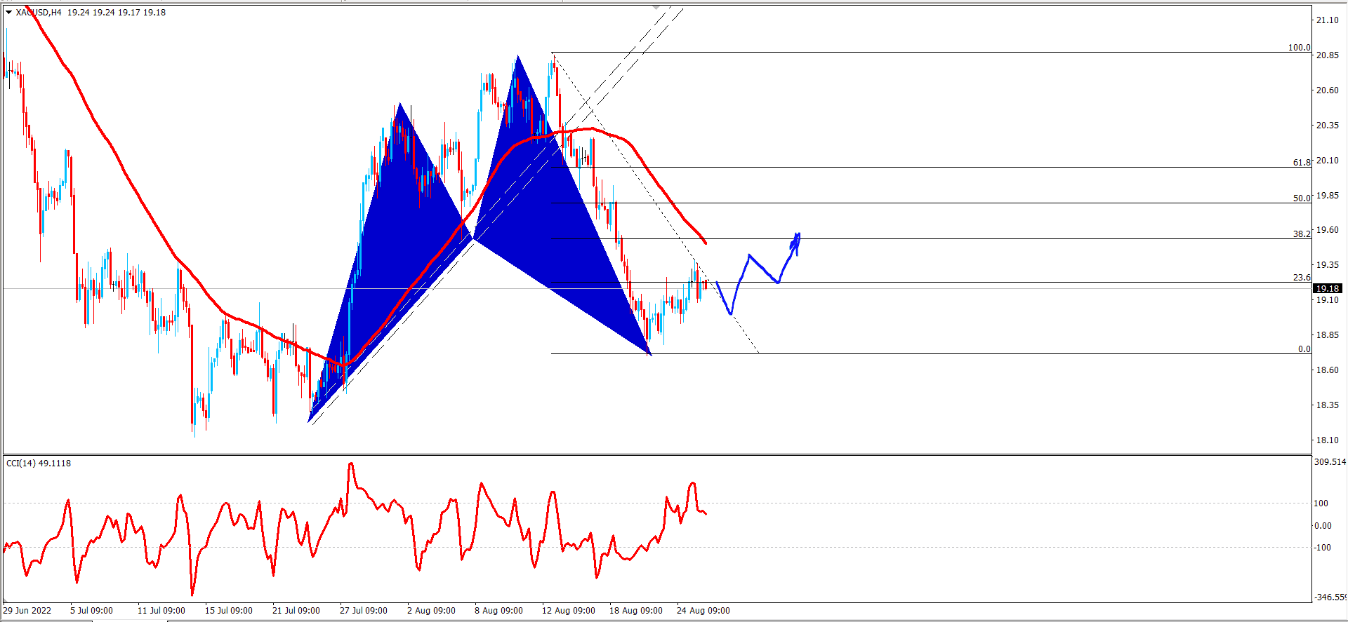 نموذج موجى على شارت الاربع ساعات متكون على معدن الفضه لنلاحظ انتهاء التداول بموجه الهبوط عند مستوى 18.80 لنشهد منها ارتداد بموجه صاعده تمتد معما الى مستوى 19.20 ثم مستوى 20.90