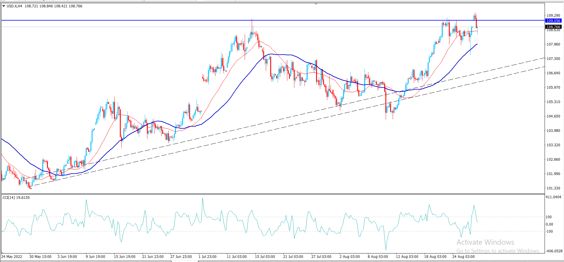 موجه من الصعود كما نوهنا مسبقا استمرت معنا الى مقاومه اليوميه الهامه ومنها استسلم سعر المؤشر للضغوط الإيجابية المتكررة مشكلا بذلك اندفاع إيجابي قوي متجاوزا الهدف المتمركز عند 109.10 لينجذب بذلك نحو 109.45 تقريبا.