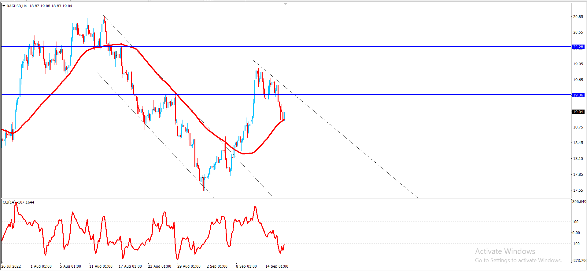 من خلال التداولات الوارده امس وتكون قمم وقيعان هابط نلاحظ الان تكونت معنا موجه هبوط ومنها تمكن سعر الفضة من ملامسة هدفنا السلبي الأول عند 18.80 ويضغط سلباً عليه،