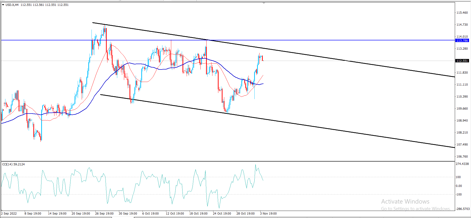 ونلاحظ ايضا وصول مؤشر السى سى اى نحو مستوى تشبع الشراء سيمد السعر بعزم إيجابي إضافي ليسهل مهمة استئناف الارتفاع ليزيد ذلك من فرص الوصول نحو المحطات الإضافية المستقرة عند 112.40 و113.00 خلال الفترة القريبة.