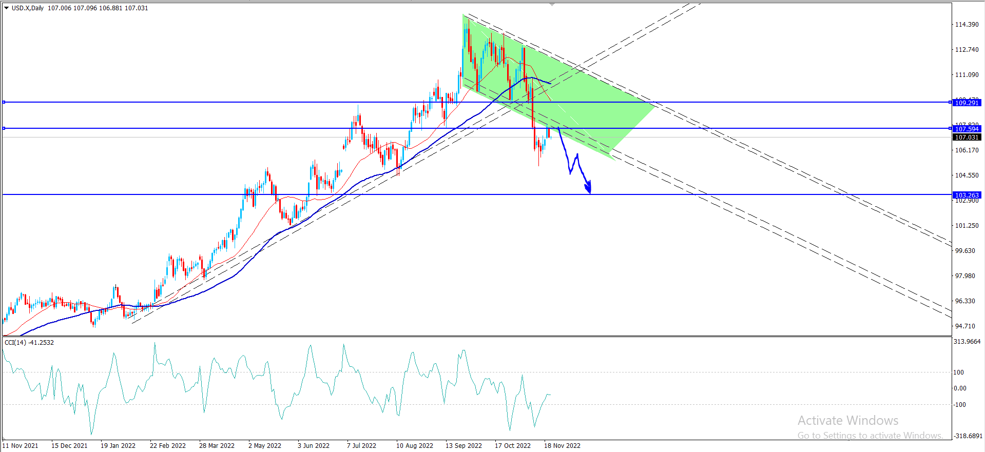 مؤشر الدولار الأمريكي والقناه الهابطه