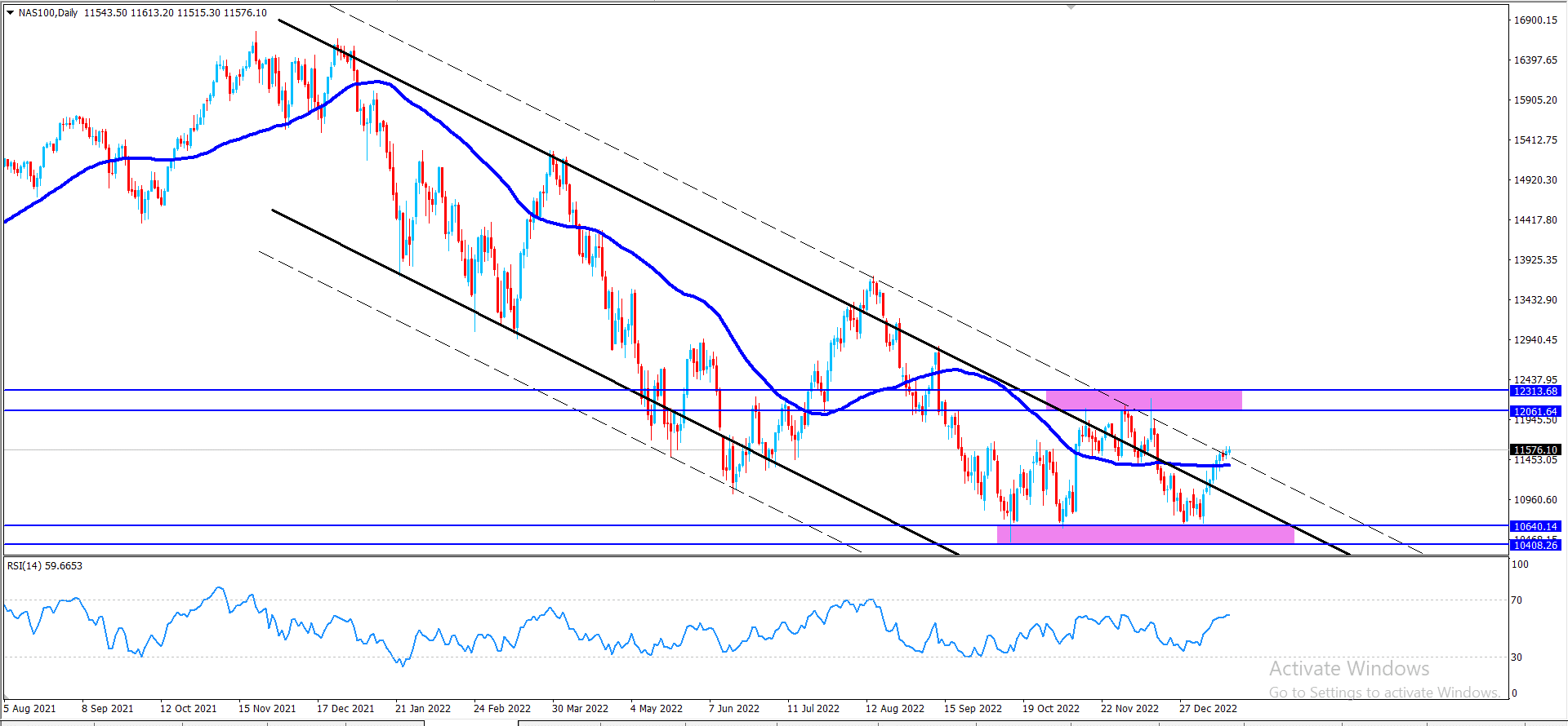 تداولات واضحه بشكل ضعيف على شارت الاربع ساعات ومنها كما نلاحظ على سعر المؤشر لتقديم خلال الفترة الأخيرة ليتأثر بسلبية المتوسط المتحرك 55 والمتمركز قرب 11700.00 ليعيق بدوره محاولات استئناف الهجوم التصحيحي الصاعد والذي يستهدف بشكل رئيسي مقاومة القناة الهابطة الممتدة نحو 11800.00.