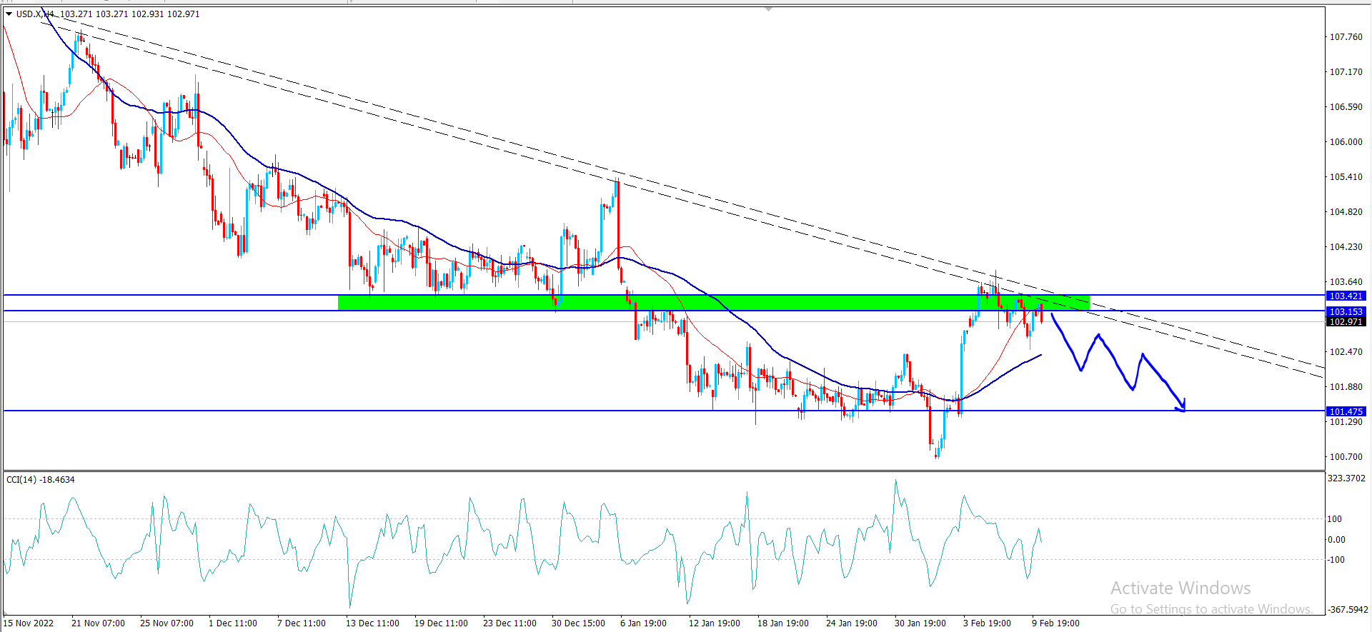 مستويات هامه عند مقاومه يوميه هامه تتفق مع الترند الهابط المتكون معنا الان كما نلاحظ على الشارت المرفق اعلاه لنلاحظ منها حاول سعر المؤشر أمس تقديم بعض التداولات التصحيحي السلبية ليلامس بذلك الدعم الإضافي المستقر عند 102.45 ومن ثم ليجدد نشاطه الإيجابي باندفاعه نحو 103.20.