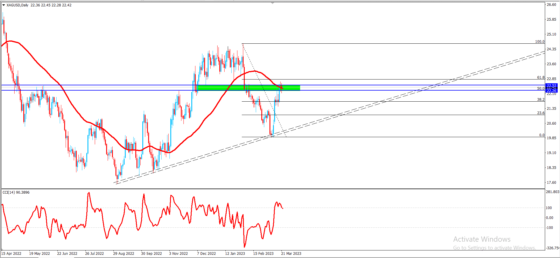 علما بأننا الان فى حاله انتظار مزيد من الارتفاع لاختبار مستوى 23.05 كهدف تالي مع التذكير بأن اختراق هذا المستوى سيدفع السعر نحو الهدف التالي الذي يصل إلى 24.00.