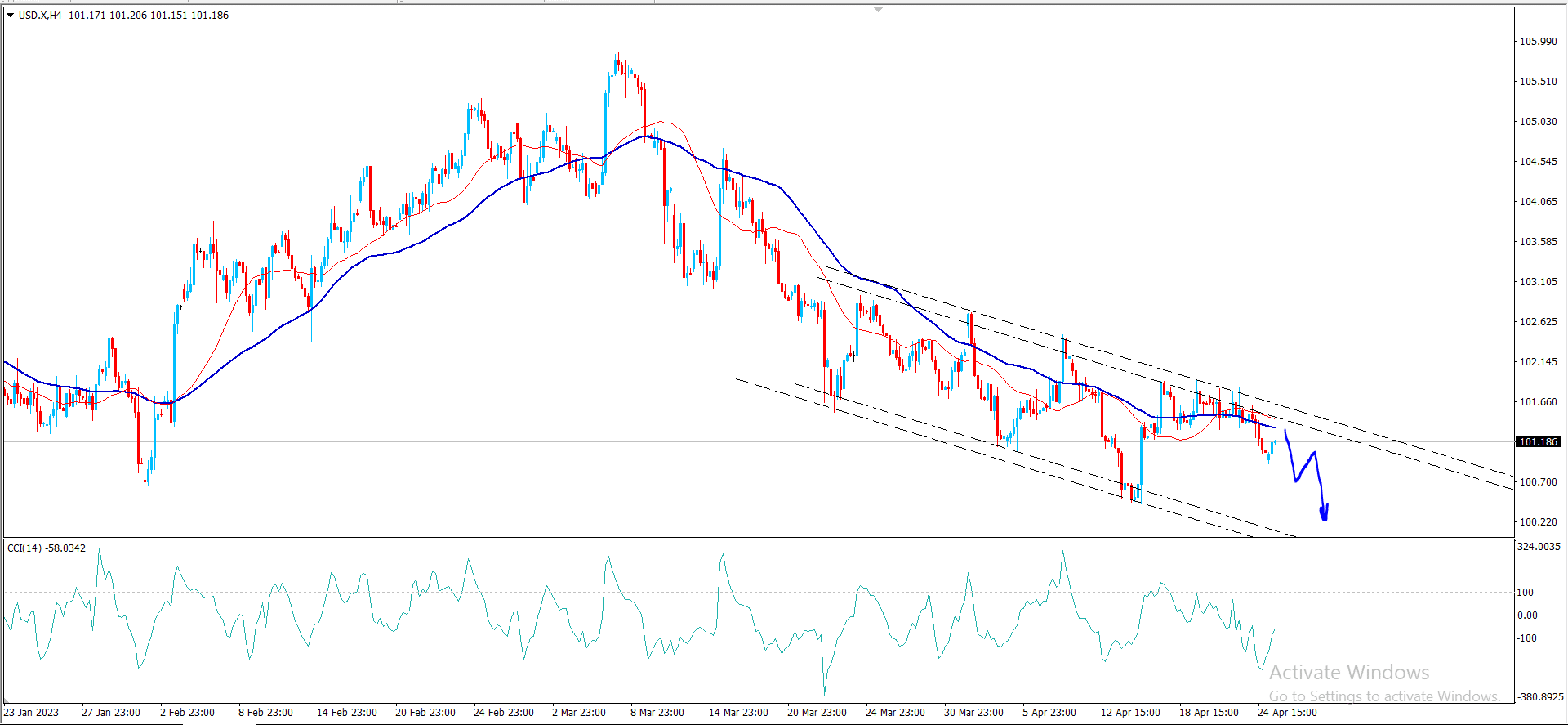 استسلم من جديد على شارت المرفق اعلاه سعر المؤشر للضغوط السلبية المتمثلة بثبات الحاجز المستقر عند 102.10 إضافة لسلبية مؤشر السى سى اى مقدما بذلك موجات سلبية ليستقر قرب الهدف السلبي الأول المتمثل بمستوى 101.10.