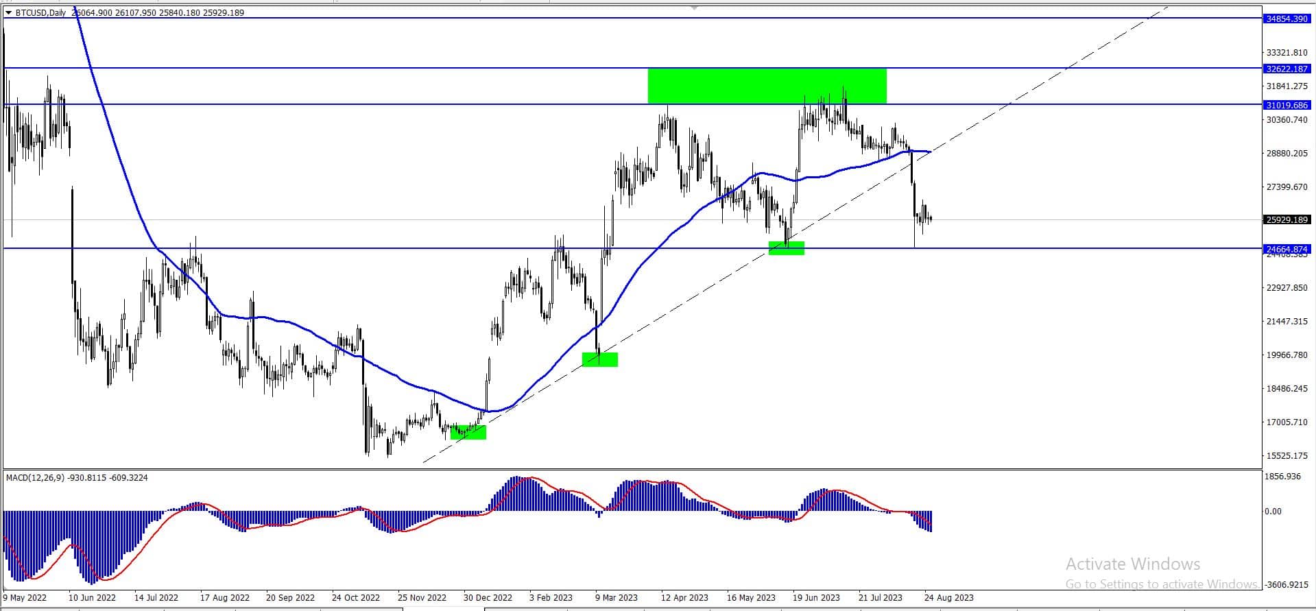 ليستمر النطاق الضيق بالسيطرة على تداولات سعر البتكوين وسيبقى سيناريو الاتجاه الهابط المتوقع قائماً كما هو دون تغيير، معتمدين على الثبات دون مستوى 26640.85، مع التذكير بأن هدفنا التالي يتواجد عند 25280.00.
