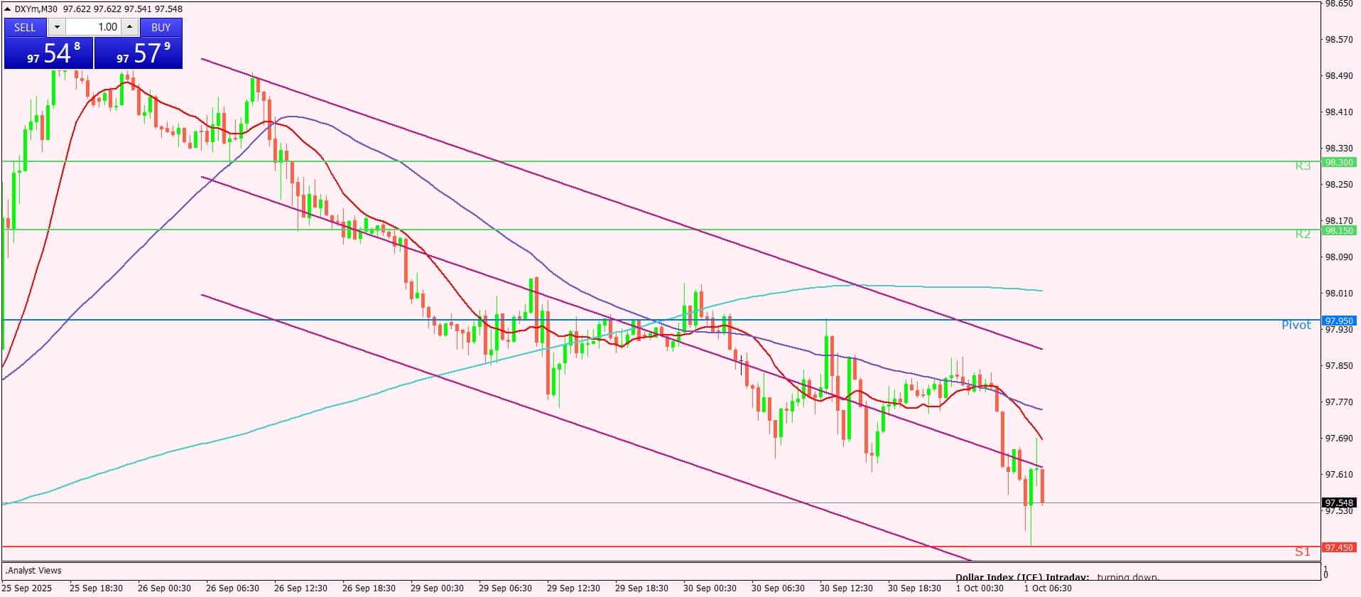مراكز بيع أسفل مستوى 97.95 مع استهداف 97.45 ثم 97.30 في حال استمرار التراجع.