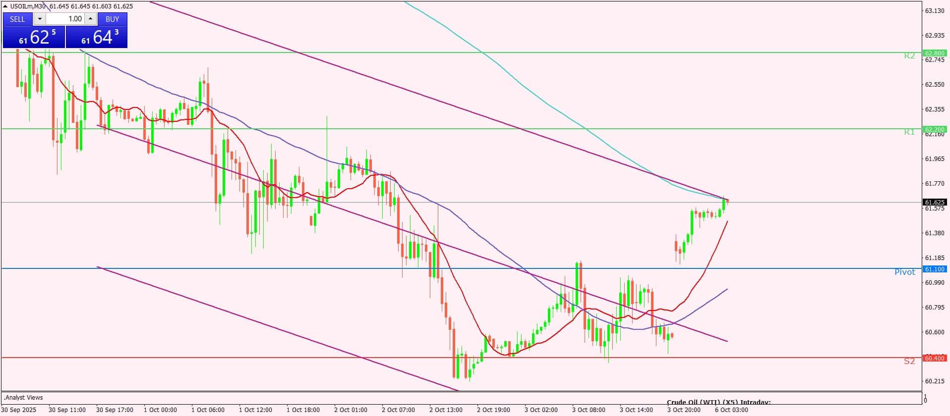 📈 مراكز شراء أعلى مستوى 61.10 مع أهداف عند 62.20 ثم 62.80 في حال استمرار الصعود.