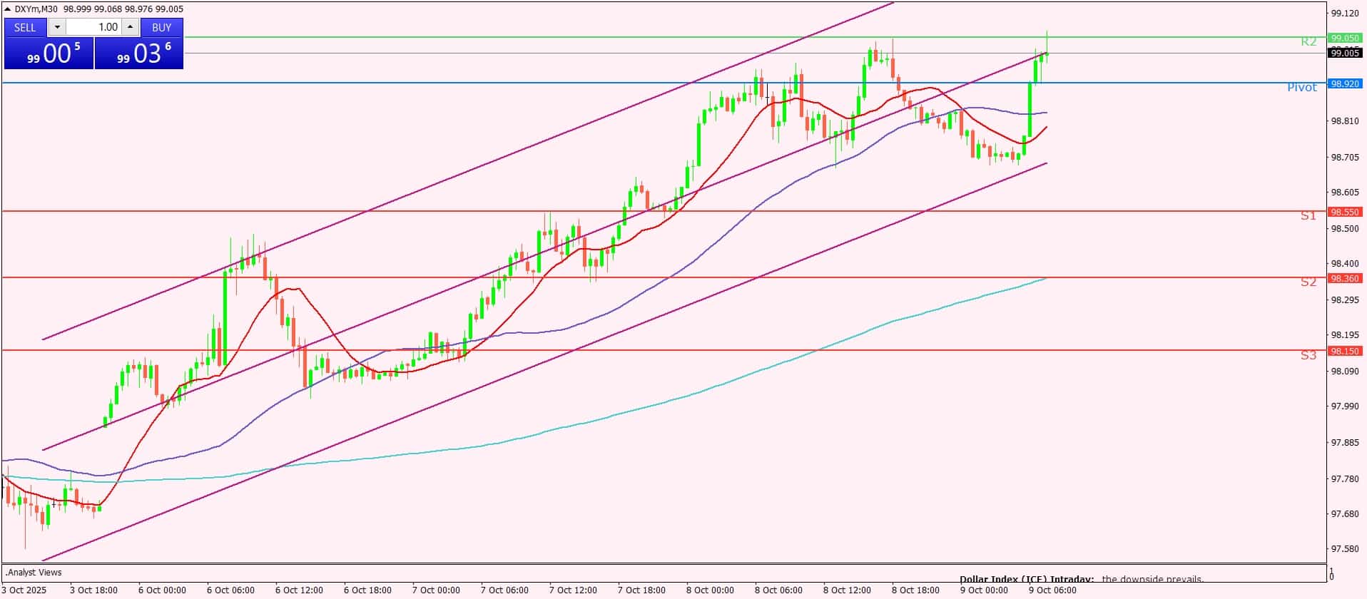 في حال اختراق مستوى 98.92 صعودًا، من المتوقع تسجيل مكاسب إضافية نحو 99.05 ثم 99.20.