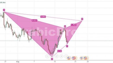 المضارب العربي / نموذج الهارمونيك Bat علي زوج CADJPY علي الاطار الزمني الاربع ساعات, زوج العملات الكندي قام بمحاولة جديدة للصعود الا أن الزوج اصطدم منطقة الانعكاس المتوقعة ونهاية نموذج الهارمونيك البيعي bat. شهدنا رد فعل بشمعة انعكاسية لم تغلق بعد علي فريم الاربع ساعات. ننتظر اغلا الشمعة وفي حال بقائها…