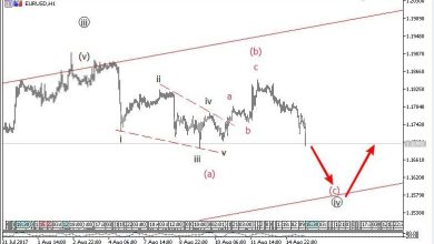 المضارب العربي / التحليل الموجي لزوج EURUSD تراجع اليورو دولار بعد صدور تقارير ان محافظ البنك المركزي الاوروبي لن يقوم بإصدار اي سياسات جديدة خلال مؤتمر جاكسون هول التابع لمجلس الاحتياطي الفدرالي الأمريكي. وخفف التقرير التوقعات بأن البنك المركزي الأوروبي يقترب من الإعلان عن خطط لتخفيض برنامج التحفيز النقدي. موجيا, السعر في الموجة C…