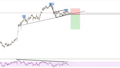 المضارب العربي / نموذج الرأس والكتفين علي زوج EURJPY لازال زوج العملات اليورو يان يسير في اتجاه صاعد علي فريم الساعة, لاحظنا تراجع كبير في الزخم الايجابي وضعف في الاتجاه مع ظهور النموذج الانعكاسي الرأس والكتفين. نتوقع الهبوط ونوصي بالبيع مع كسر الترند لاين الصاعد والذي يمثل خط العنق لنموذج الرأس…