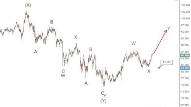المضارب العربي / التحليل الموجي لزوج AUDJPY علي الاطار الزمني اليومي, زوج العملات الاسترالي يان في نسق تصحيحي معقد. رغم أن الاتجاه يبدو اتجاه صاعد الي أن التركيب الثلاثي الداخلي لهذه الموجات يجعلها موجات تصحيحية وليست دافعة. حسب الترقيم الموجي الموضح علي الشارت. نتوقع صعود خلال الأسابيع والأشهر القادمة في…