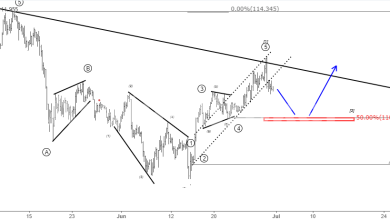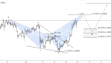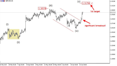 المضارب العربي / التحليل الموجي لزوج GBPUSD يقترب الجنيه الاسترليني من سعر الدولار وثلاثين سنتاً للجنيه الواحد بعد صعود مؤشرات المنازل البريطانية يوم أمس وصدور بيانات القروض بشكل ايجابي هذا اليوم. موجيا وعلي فريم الاربع ساعات, الزوج في المرحلة الأخيرة من الصعود حيث نتوقع مزيد من الصعود في اطار الموجة الخامسة…