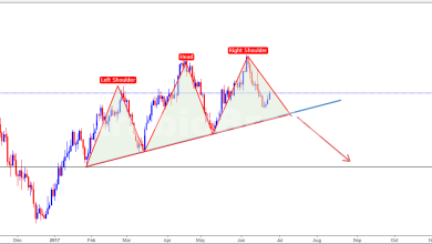 المضارب العربي / نموذج الرأس والكتفين علي الذهب انخفضت أسعار الذهب واحدا بالمئة إلى أدنى مستوياتها في نحو ستة أسابيع يوم الاثنين في ظل ارتفاع الدولار والأسهم الآسيوية قبل صدور مجموعة من البيانات الأمريكية هذا الأسبوع. علي فريم الاربع ساعات, نلاحظ بوضوح تكوين النموذج الفني الانعكاسي الرأس والكتفين. فرصة مناسبة للبيع في حال…