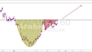 المضارب العربي / نموذج الكوب والعروة علي الذهب إرتفعت العقود الآجلة للذهب في التداولات الصباحية بالتوقيت الأوروبي لليوم الجمعة، لتبقى على مقربة من أعلى مستوياتها في 3 أسابيع، مع تراجع الدولار الأمريكي على نطاق واسع بعد ان صدور محضر اجتماع بنك الإحتياطي الفيدرالي. فنيا ظهر أمامنا النموذج النادر الكوب والعروة. نوصي…