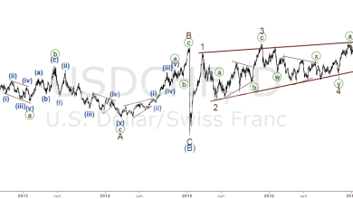 المضارب العربي / تحديث التحليل الموجي لزوج USDCHF علي الاطار الزمني اليومي, زوج العملات الدولار فرنك سويسري يتداول في حركة عرضية تميل أكثر للصعود. حسب الترقيم الموجي الموضح علي الشارت الزوج اقترب من انهاء الموجة C الخماسية الدافعة.هذه الموجة جائت علي شكل نموذج الموجة الدافعة القطرية الخلفية وكما نعلم فهي موجة…
