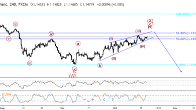 المضارب العربي / التحليل الموجي لزوج EURCHF بعد الهبزط الكبير لزوح اليورو فرنك سوسري طيلة الأسابيع الماضية قام بالتصحيح أخيرا. علي فريم الاربع ساعات وحسب الترقيم الموجي الموضح علي الشارت. السعر في موجة تصحيحية WXY حيث اقترب نت انهاء الموجة X التصحيحية. نتوقع الهبوط خلال الأيام القادمة في اطار الموجة Y…