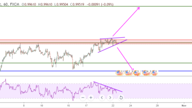 المضارب العربي / نموذج المثلث المتماثل علي زوج USDCHF رغم ارتفاع اليورو اليوم بفضل هبوط تكلفة اقتراض الحكومة الإيطالية بعد الارتفاع الأخير لتنعم السوق بشيء من الهدوء. لم نري ارتفاعات علي الفرنك السوسري حيث بقي ضعيفا أمام الدولار أمريكي. السعر يسبر في جركة تصحيحية علي شكل نموذج المثلث المتماثل حول المقاومة الهامة…