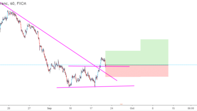 المضارب العربي / نموذج المثلث الهابط علي زوج GBPCHF أشرنا في تحليل فني يوم أمس الي قرب الزوج من انهاء نموذج الرأس والكتفين المقلوب علي زوج الاسترليني فرنك وبالتحديد علي فريم اليومي. في نفس الاطار وعلي فريم الاربع ساعات, نتوقع صعود السعر لانهاء النموذج وايضا فرصة للشراء مع اختراق نموذج المثلث…