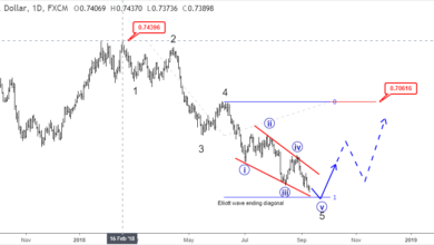 المضارب العربي / التحليل الموجي لزوج NZDUSD انخفض تداول الدولار النيوزلندي مقابل الدولار الأمريكي خلال الأشهر الماضية. علي فريم الساعة, وحسب الترقيم الموجي الموضح علي الشارت. السعر قريب من انهاء موجة دافعة هابطة خماسية ننتظر بعدها الارتداد لأعلي كما هو موضح بالاسهم علي الشارت.