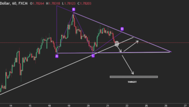 المضارب العربي / نموذج المثلث الهابط علي زوج GBPAUD قبيل اختتام اجتماع بنك انجلترا بشأن السياسة النقدية في وقت لاحق من اليوم. يتراجع الجنيه الاسترليني أمام الدولار استرالي علي فريم الساعة. بعد اتجاه صاعد قام السعر بتكوين نموذج المثلث الهابط. نتوقع الهبوط وكسر النموذج والترند لاين الهابط. الحركة المتوقعه موضحة علي…