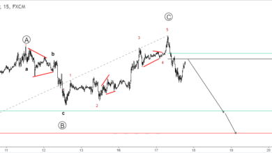 المضارب العربي / التحليل الموجي لزوج GBPUSD ارتفع الدولار يوم الخميس، في حين انخفض الجنيه الاسترليني بعد انخفاض مبيعات التجزئة عما كان متوقعًا. السعر أغلق لليوم الثاثل علي التوالي بشمعة هابطة في اشارة علي ضعف الاتجاه الصاعد. موجيا السعر اقترب من انهاء موجة دافعة صاعدة خماسية, نتوقع انعكاس الاتجاه علي اثرها…