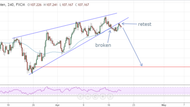 المضارب العربي / نموذج الوتد الصاعد علي زوج USDJPY ارتفع الدولار مقابل الين يوم الأربعاء وسط تحسن الرغبة في المخاطرة مع تراجع المخاوف من الاحتكاك التجاري بين الولايات المتحدة والصين والتوترات في الشرق الأوسط. فنيا, السعر قام بكسر نموذج الوتد الصاعد وأعاد الاختبار. نوصي بالبيع من السمتوي الحالي واستهداف الدعم النفسي…