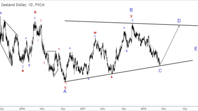 المضارب العربي / التحليل الموجي لزوج AUDNZD علي الاطار الزمني اليومي, تراجع زوج العملات الاسترالي نيوزلندي طيلة الأشهر الماضية في موجة c من الموجة المثلثية المتعاقدة CT حسب الترقيم الموجي الموضح علي الشارت. نتوقع انعكاس السعر لتكوين الموجة d الصاعدة باتجاه الحد العلوي لنموذج المثلث.