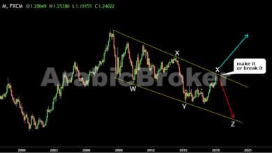 المضارب العربي / موجة تصحيحية علي EURUSD فريم الشهري قفز اليورو أكثر من نصف بالمئة يوم الجمعة بعدما ترددت في أسواق العملات أصداء تعليقات مسؤولين أمريكيين كبار هذا الأسبوع عبروا فيها عن دعمهم لضعف الدولار. هذا الصعود الأخير أدي الي اقتراب السعر من الحد العلوي للقناة الهابطة الواضحة علي فريم الشهري.…