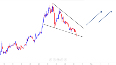المضارب العربي / نموذج الوتد الهابط علي زوج GBPUSD تراجع الجنيه الإسترليني بعد أن استعاد الدولار بعض القوة مقابل سلة عملات، ولكن مكاسب الدولار الأمريكي كانت محدودة وسط شكوك حول التزام إدارة ترامب بعملة قوية. فنيا, علي فريم الساعة, زوج الباوند دولار يسير في حركة تصحيحية هابطة علي شكل نموذج الوتد…