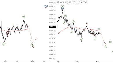 المضارب العربي / التحليل الموجي للذهب تحركت أسعار الذهب في نطاق ضيق يوم الجمعة دون أعلى مستوياتها في الجلسة السابقة مع استقرار الدولار وسط حالة من الحذر قبل صدور تقرير الوظائف الأمريكية في وقت لاحق يوم الجمعة. موجيا, علي فريم اليومي السعر في حركة تصحيحية معقدة WXY تظهر بوضوح علي الشارت الأيمن. نتوقع…