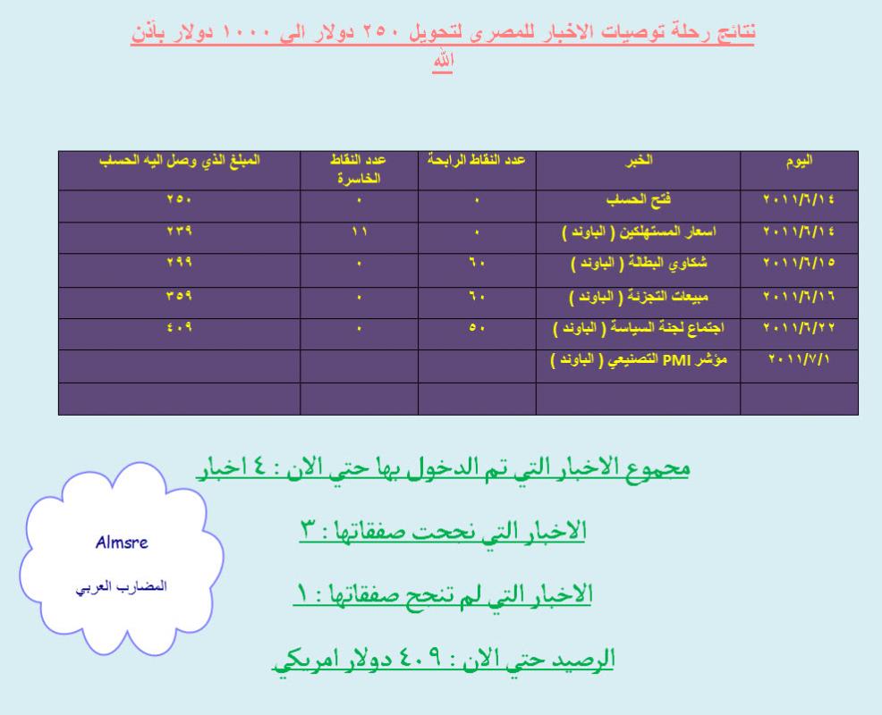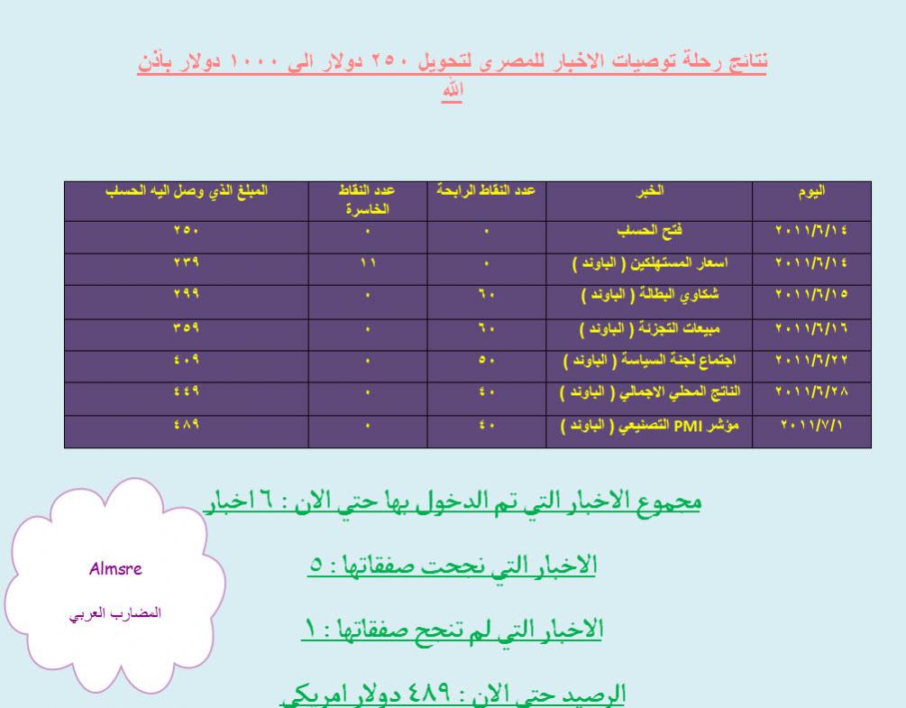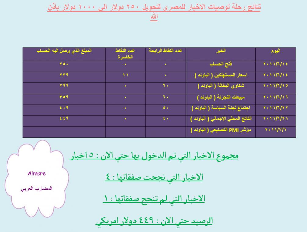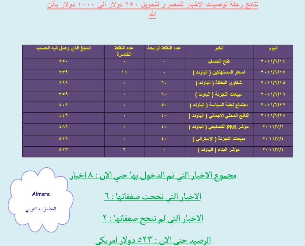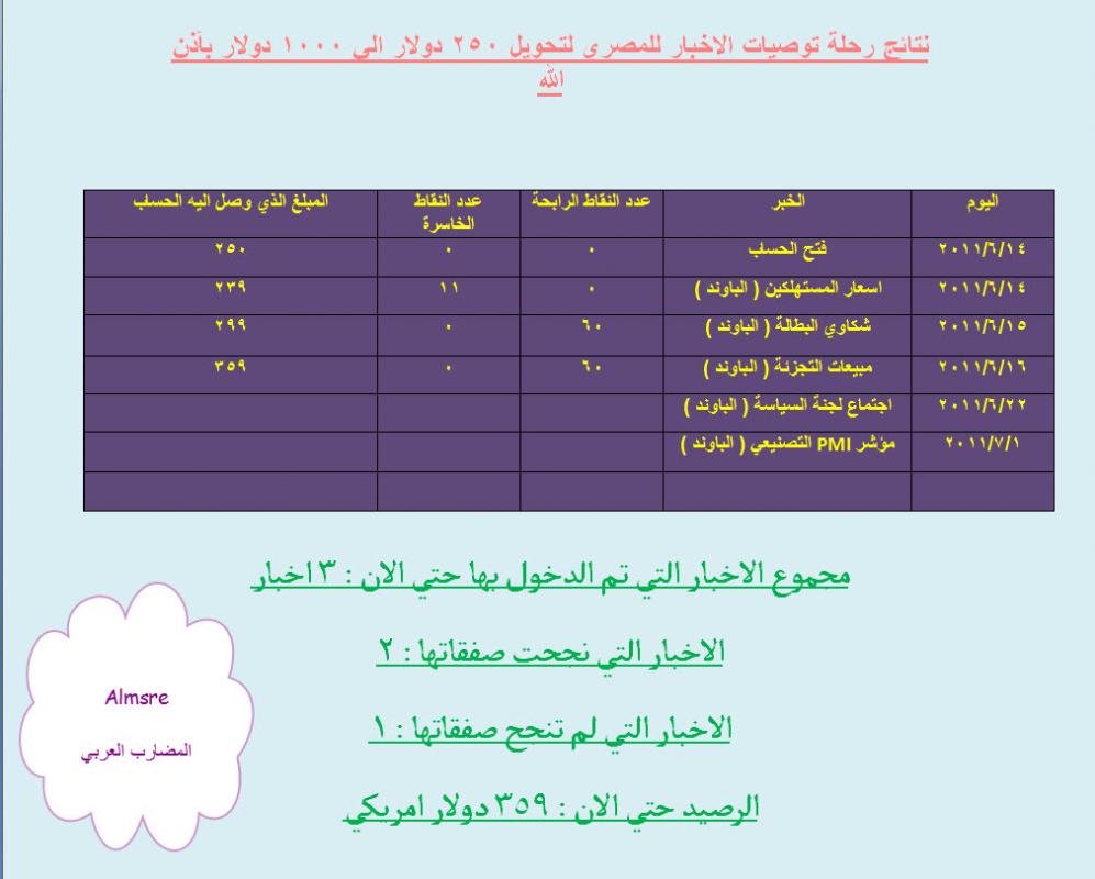 نتائج توصيات رحلة المصري للاخبار ( تجدها بالداخل ) تم الوصول الي 633 دولار امريكي